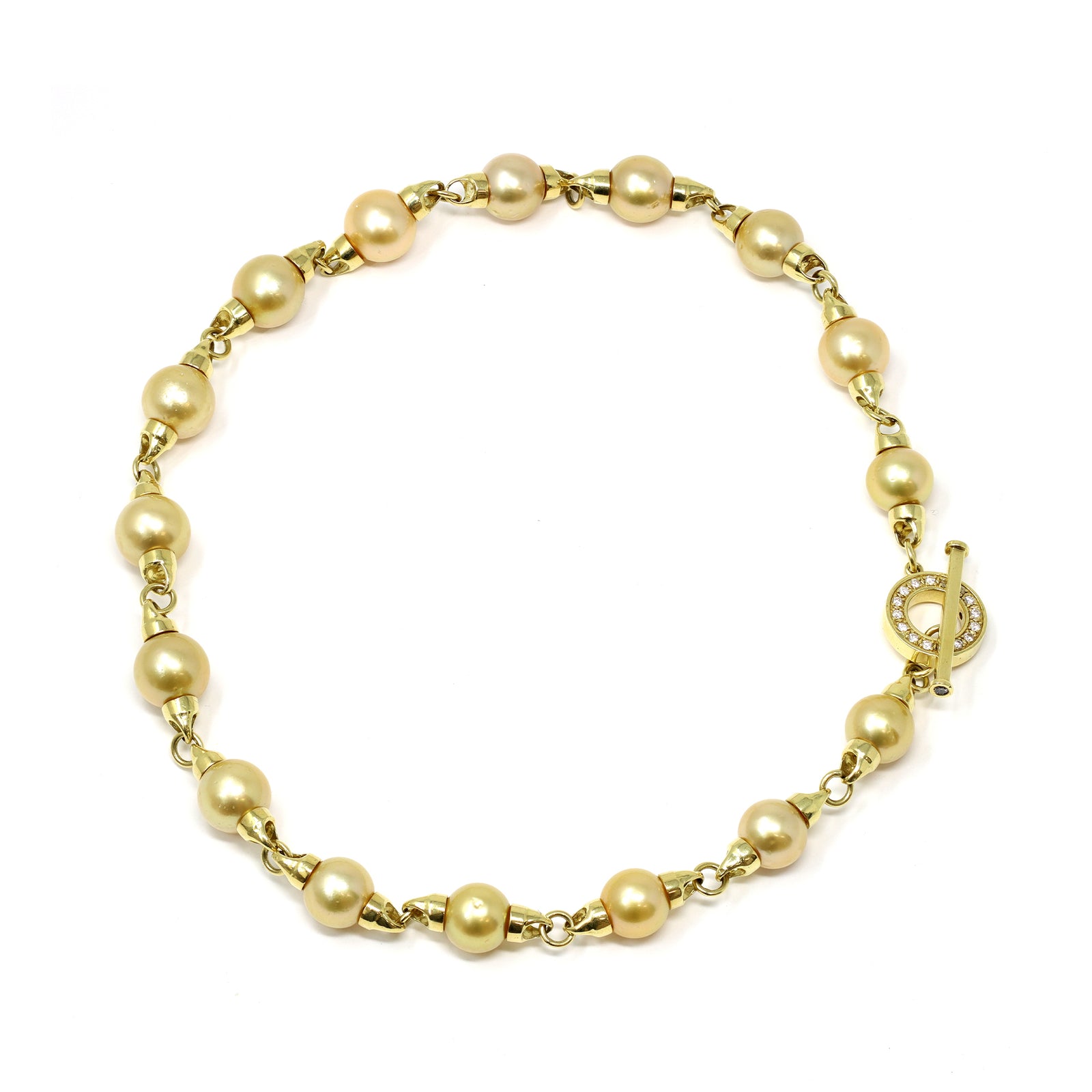 $8,850.00 USDRosaria Varra Natural Gold South Sea Pearl Station Necklace in 18 Karat Gold